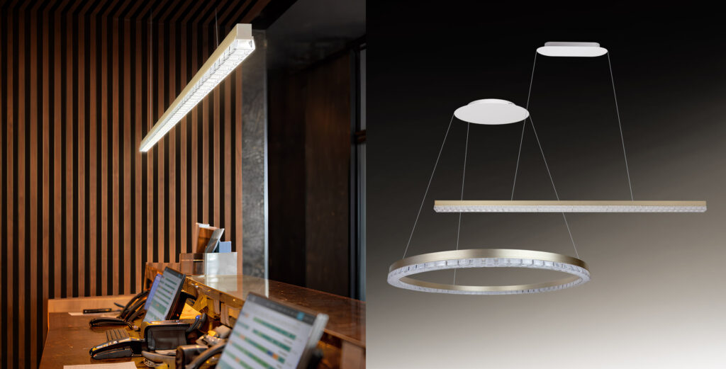 To coś więcej niż oprawy oświetleniowe – to elementy, które budują charakter i wizerunek przestrzeni. Stworzone z myślą o recepcjach, lobby, biurach i nowoczesnych przestrzeniach komercyjnych, gdzie światło ma nie tylko funkcję użytkową, ale też estetyczną i wizerunkową. Nowoczesna, elegancka forma – subtelny efekt świetlny z charakterystyczną strukturą „crystal” przyciąga uwagę, nie dominując wnętrza.