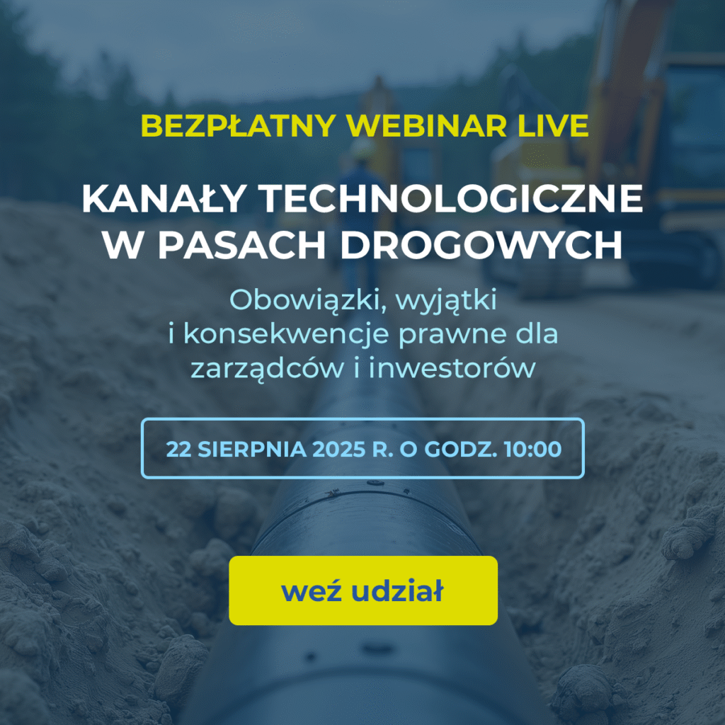 Forum Media Polska zaprasza na bezpłatny webinar pt. „Kanały technologiczne w pasach drogowych: Obowiązki, wyjątki i konsekwencje prawne dla zarządców i inwestorów”, który odbędzie się 22 sierpnia o godzinie 10:00. Sprawdź szczegóły: www.fmp.pl/webinar-drogowy