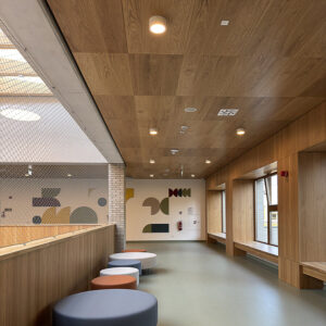 Sale lekcyjne wyposażono w oprawy PISA LED oraz PRATO Q LED, w toaletach zastosowano VIP WALL IP44 LED. Ciekawe układy linii świetlnych zrealizowane zostały w oparciu o rodziny SIGMA II LED i SIGMA II CORNER X LED, a w stołówce aranżację sufitu uzupełniło DECO LED.
