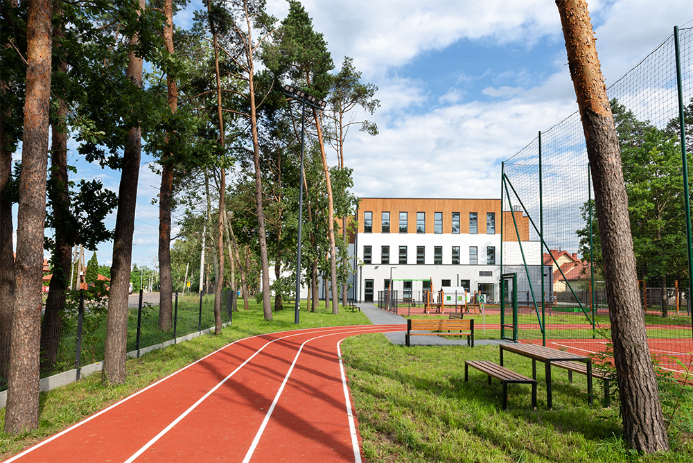 Podczas budowy zadbano o drzewostan przez co teren nabiera wyjątkowo przyjaznego charakteru. Rośliny stanowią naturalną barierę dla hałasu i zanieczyszczeń, tworzą cień i chronią przed nadmiernym nasłonecznieniem, co jest szczególnie ważne podczas letniego semestru. Ich obecność pozytywnie wpływa na estetykę obszaru, dodając mu uroku i harmonii. Zadbana zieleń zachęca uczniów do spędzania przerw lekcyjnych na zewnątrz, co wspiera ich relaks i integrację.